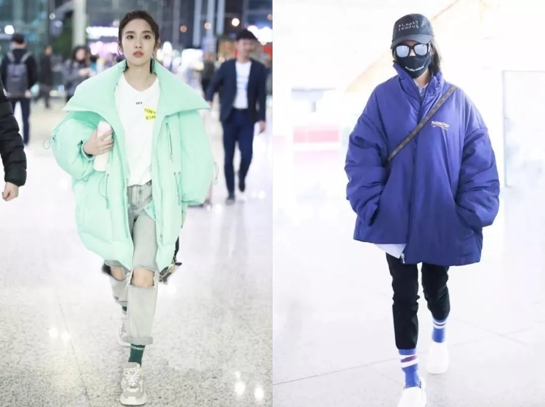 比如,大家可以像唐艺昕和张天爱一样,用袜子来搭配羽绒服,既彰显了细节处的精致,又起到了提亮整体look的作用。⬇