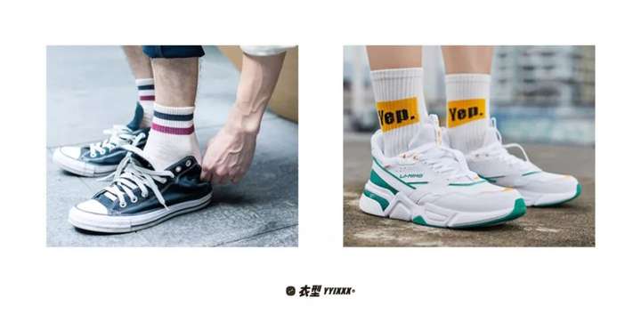 7.运动鞋常见搭配短袜,中袜和长袜。