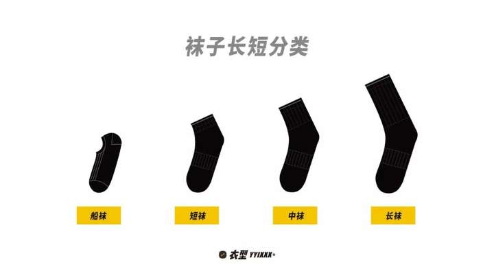 长袜,大多会到小腿中部。常见于商务绅士黑袜、简约休闲白袜、潮流提花款式。