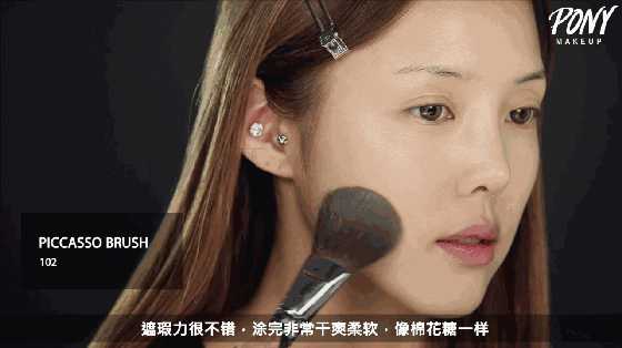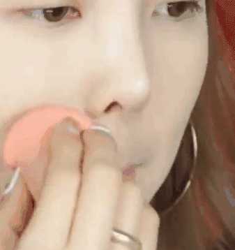 这里有个小tips,上完粉底液之后用沾湿的海绵或美妆蛋干净的一边轻压脸部,吸取油分,也使底妆更服帖,手法一定要轻,不然底妆都给吸走了。