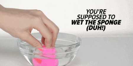 上妆时,先将粉底液挤在手背上,再用指腹蘸取采取5点法涂于面部,最后用浸了水的美妆蛋或者三角海绵(不方便浸湿的话也可以选择在接触面喷上水或喷雾)采用轻拍拍拍(千万不要涂)的方式均匀晕染整个脸部,这样的话底妆会非常的水润。