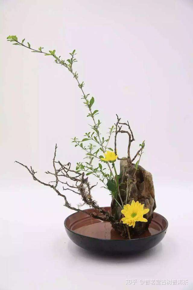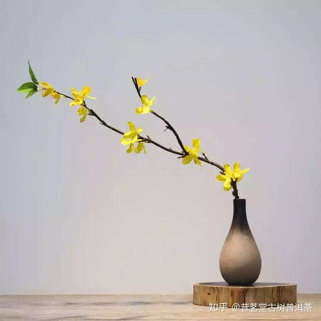 茶席插花花不求繁多,只插一两枝便能起到画龙点睛的效果。并追求线条,构图的美和变化,以达到朴素大方、清雅绝俗的艺术效果。