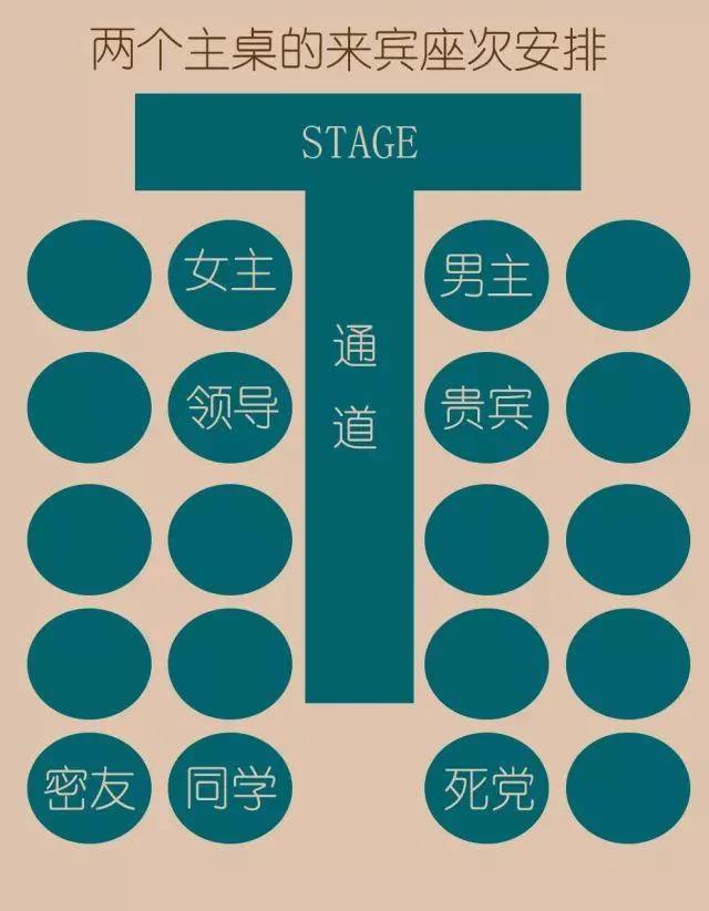 中国传统礼仪中,座位是与这个人的身份和地位紧密联系在一起的,婚宴座位的安排也是如此。主桌是喜宴的核心,在喜宴中是必不可少的。主桌的数量根据人数多少而定,可以是一个,也可以按男女双方安排两个主桌。