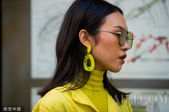 选择一副造型夸张的耳环,在单品的色彩和造型上都可以适当做减法,甚至妆容也可以不要过于浓重抢眼,把耳环当做穿搭造型中的绝对主角。
