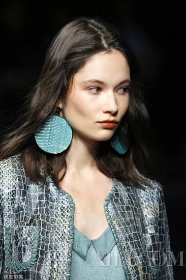 Emporio Armani的2020春夏秀场上,单色的夸张耳环释放出年轻女性对自我的表达。相比起明亮的荧光色,忧郁的蓝绿色更加百搭。