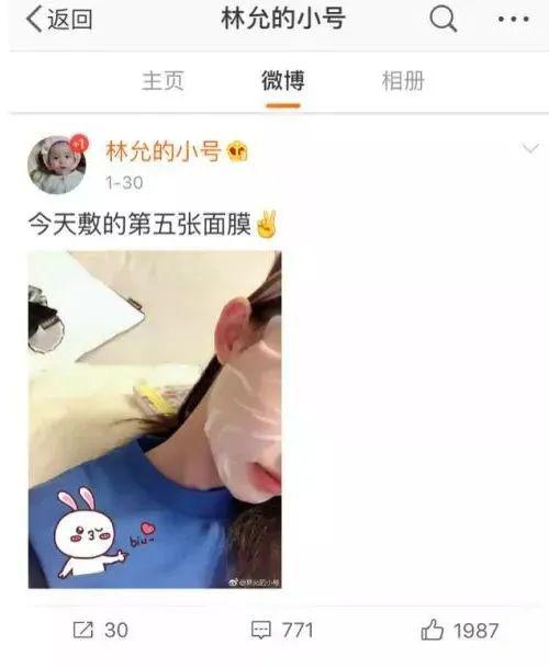 而上面这些统统抵不过允允子的一天5张面膜的操作,连粉丝都评论担心允允子的皮肤,不过本人却回复没问题,果然仙女的脸子和我等凡人不大一样~