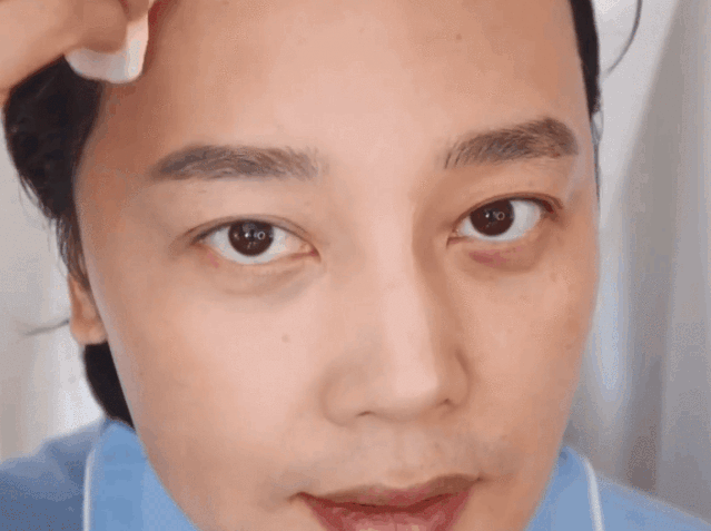 在河北裕介老师的妆教中,大多都采用了珠光眼影,但是他手法拿捏得的极好,下手不会太重,量虽少,但却能做到让眼睛更加明亮有神,肿泡眼的小可爱量力而行就好~