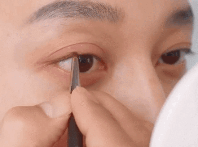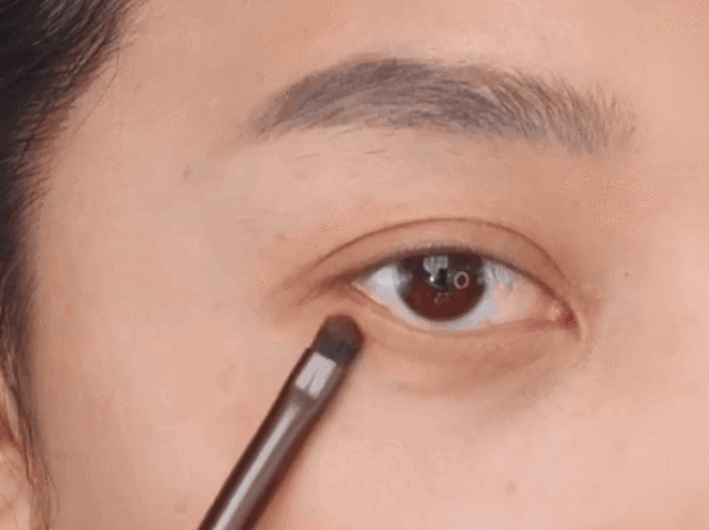 想要做到自然深邃的眼妆,在做完眼部打底之后也要注意上下眼影的自然衔接,在眼影晕染完后,用刷子从外眼角不断向内勾勒,在眼尾画出一个倒三角的形状,自然小心机眼影就完成啦~