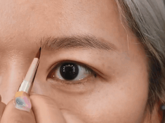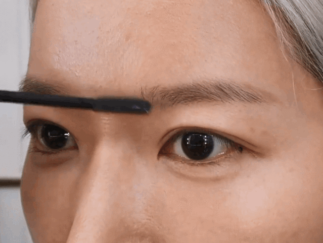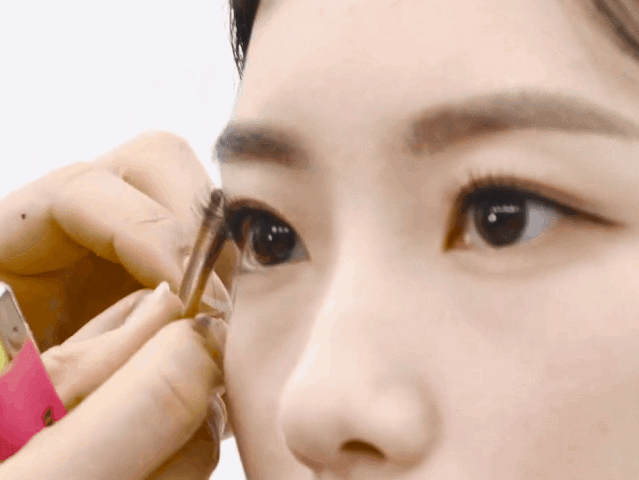 平缓偏粗的眉毛可是徐玉老师的拿手好戏,也是经典韩系妆容的重点!徐玉老师的眉毛画法更加偏向于修饰本身的眉形!她先是用染眉膏轻轻将眉毛整理一遍,不仅更有层次感,定型的作用也是非常到位!