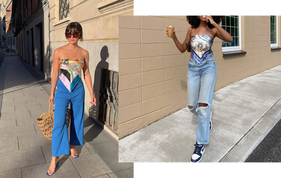 除了本身的款式,它会火还有2个很重要的原因,第一就是方便啊!随便~~从家里拿个丝巾出来一绑,就能作为上衣了。