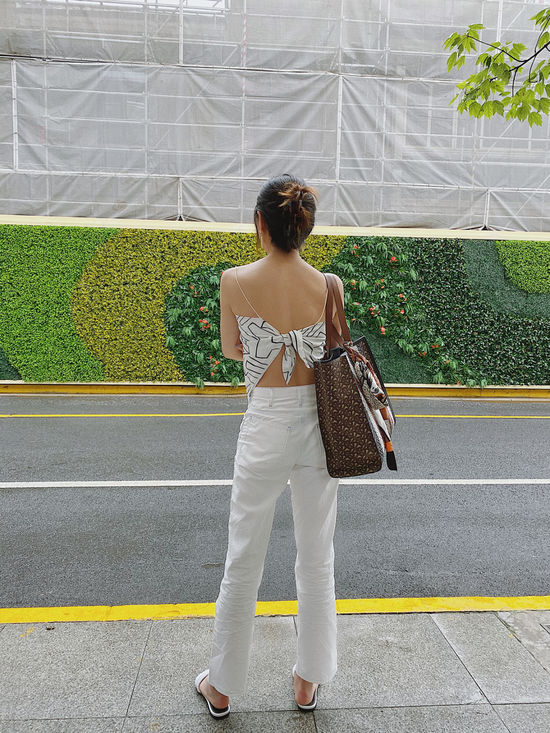 在搭配上,建议尽量避免短裤、短裙,因为上下半身都在露肤反而缺少高级感。更应该选长款裤装,让上下半身有包裹和裸露的反差性。