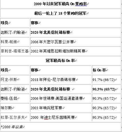 达斯汀-约翰逊标准杆上果岭率为90.3%,是2000年以来第二高的上果岭率。