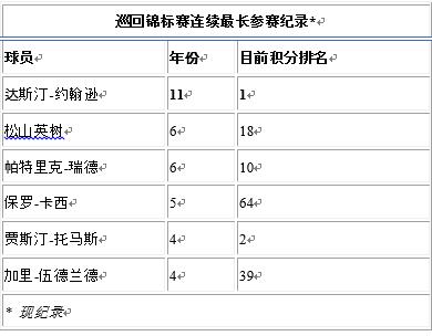 除了上述数据,达斯汀-约翰逊同时拥有最长的巡回锦标赛现存参赛纪录。这是他连续第12次打入东湖。他远远甩开其他选手。