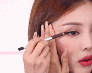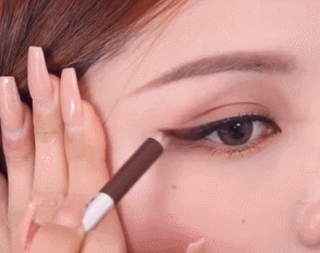 眼线要在睫毛根部留出空隙,在睫毛上面与眼线笔直接画出细眼线。眼尾带有微微上翘的效果对有眼睛自然延伸的美感,而且倍显灵动俏皮。