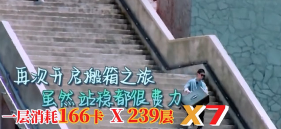 但是其实也不是妆前妆后差距大的问题,因为晓明哥前一天只睡了四个小时,上来就在36度大太阳下来来回回反反复复搬了10趟,一共2390级台阶。这其实已经有点累到浮肿+脱相的架势了,本季晓明哥需要一些心疼!