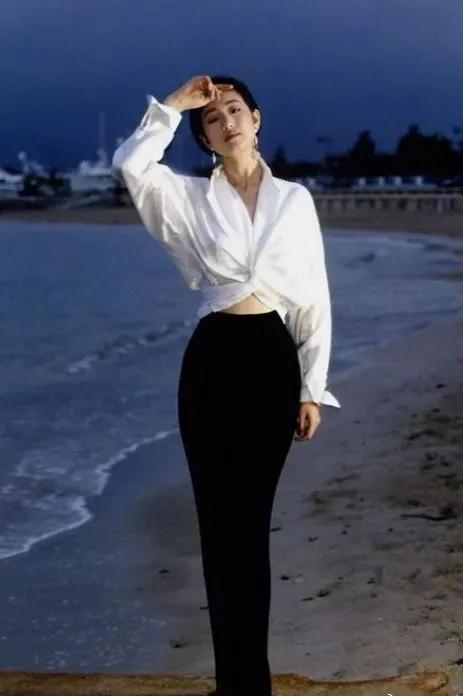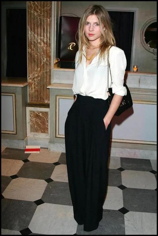 白色衬衫配上黑色半身长裙,虽然极简黑白,却也闪烁这犹如女神下凡般的光芒。