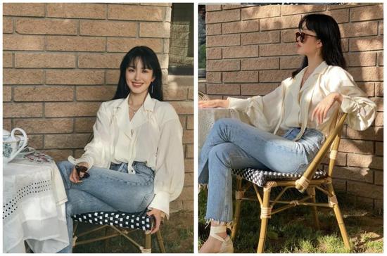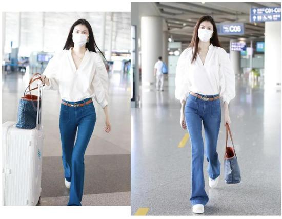 号称“人间反光板”的何穗,近期在机场被拍到V领泡泡袖白衬衫+喇叭牛仔裤,不仅活力十足,时髦感也是满分。网友纷纷表示超模也穿白衬衫“好亲民”!没错!白衬衫+牛仔裤的组合是你没有穿对。