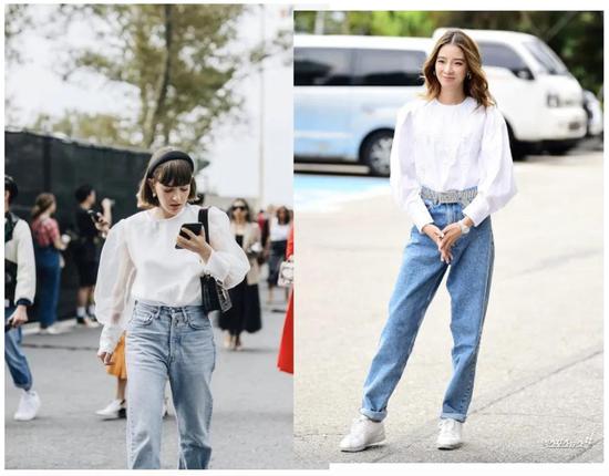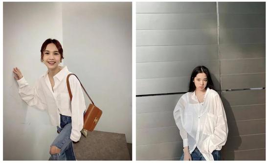 不如来看看正确的打开方式吧!白衬衫+牛仔裤让杨丞琳和欧阳娜娜两位跨时代的偶像都成了甜美的青春女孩。简直让O姐穿梭回了《恶魔在身边》的千禧年。