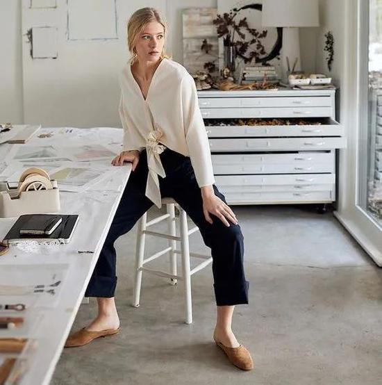 实在没有V领口衬衫,也可以直接将领子往后,或者变成了露肩,露出自然的V,这些也都是一个变美小技巧。