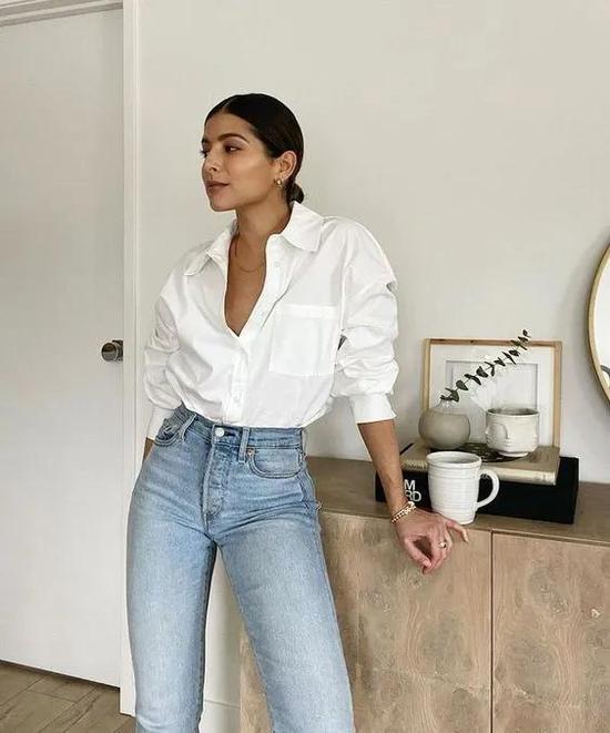 并且绝大程度的拘束是来自于衬衫,那么话不多说接下里让我们看看白衬衫+牛仔裤的搭配技巧。