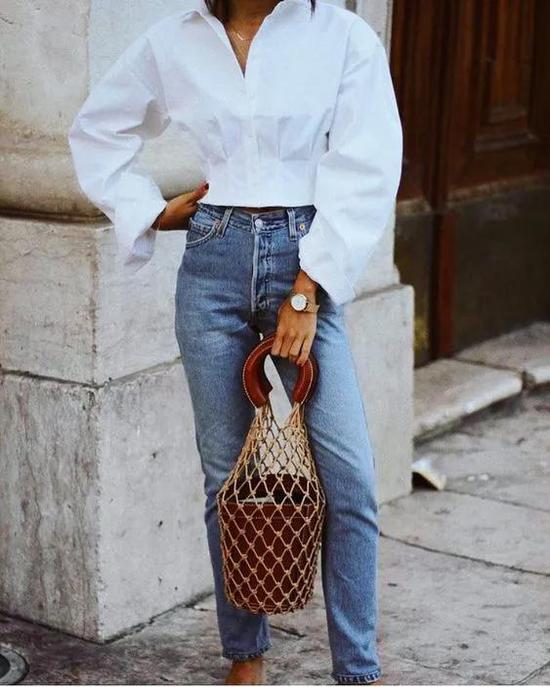 奇怪的是自从脱离学生时代,衬衫就被贴上了浓浓的“标签”。你想的白衬衫+牛仔裤装扮是不是这样?即使有搭配,但总感觉有些拘谨与奇怪?