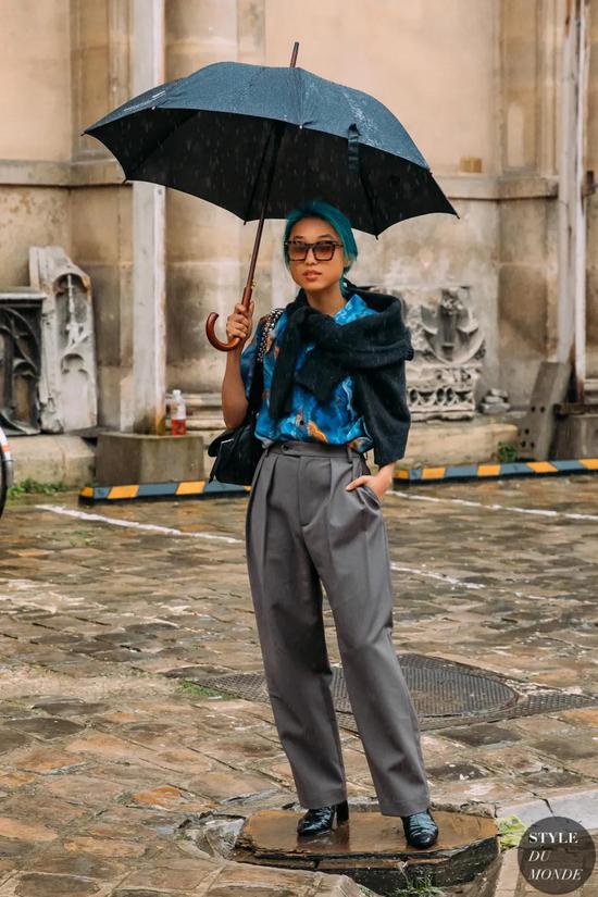 没有什么不可以,扎染这么街头休闲的元素也能和西裤来搭~夏天去海边度假的时候,应该都入手过一件这么花里胡哨的半袖衬衣吧。和同色系短裤搭,那就是海边度假的感觉,但是没想到的是搭配一条灰色的西裤,立马时髦范儿就起来了,系一条毛衣在肩膀上,既保暖,又让颜色过渡的不那么突兀。整套复制粘贴到明天的穿搭中实践一下吧!