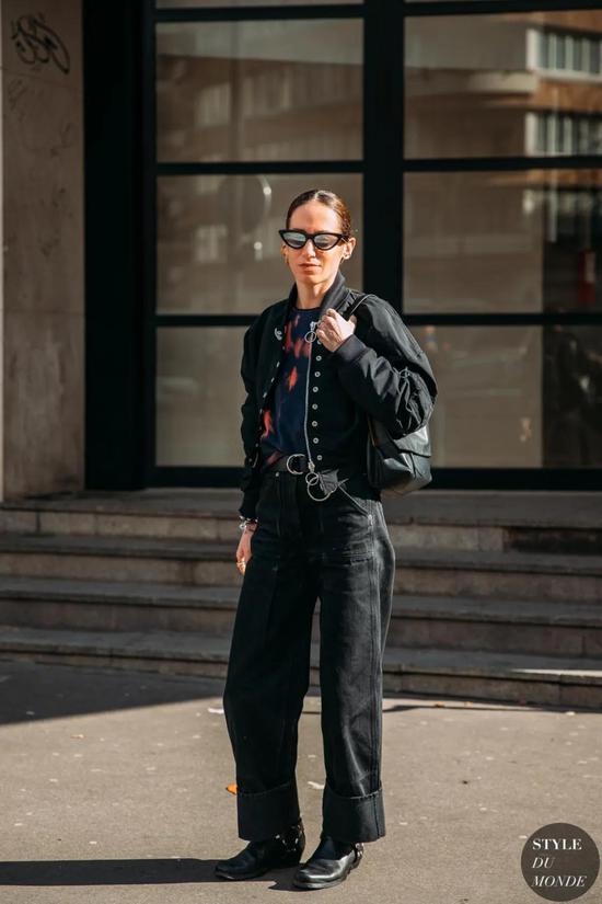 同样是蓝色,但是当它被染在紧身短上衣上,和黑灰色做晕染的时候,是不是就有土酷女孩内味儿了。