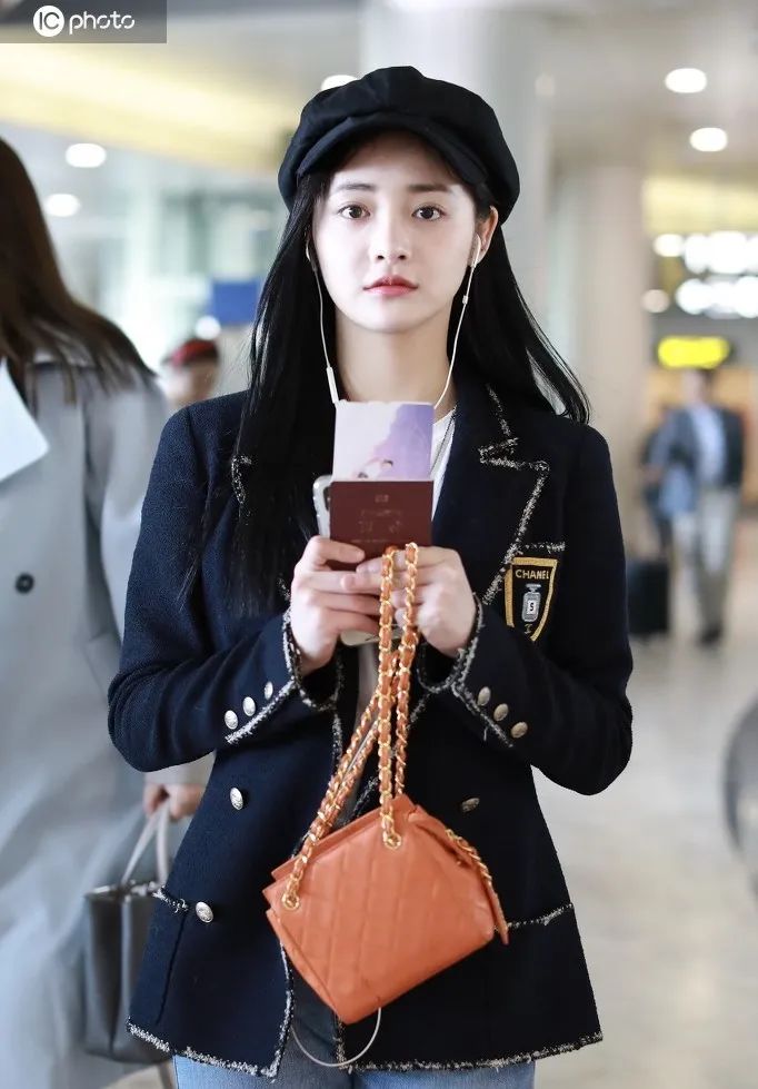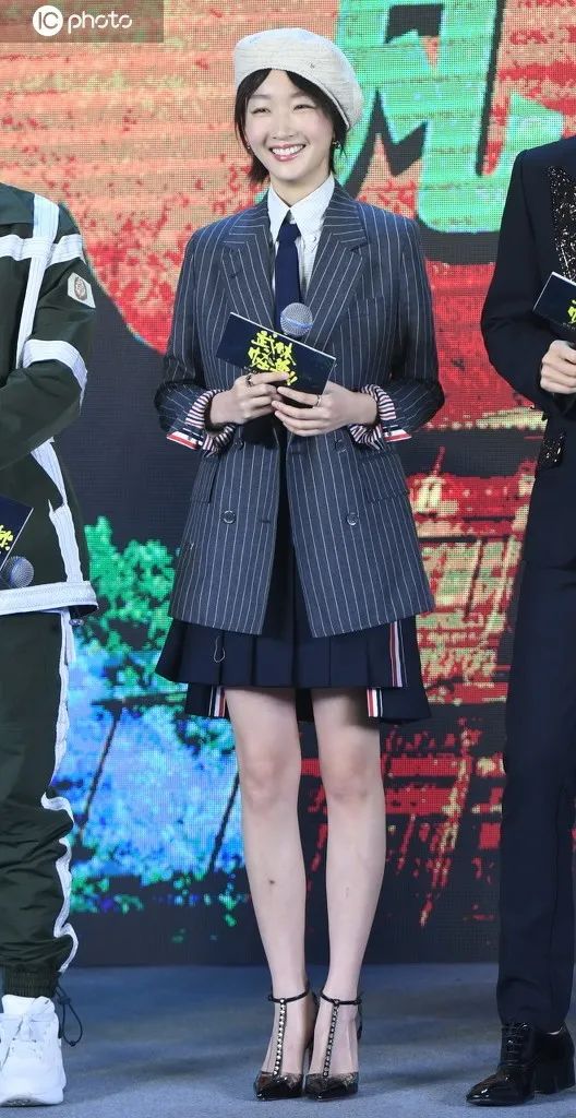 周冬雨的的西装配短裙,虽然少女但却还是有一丝商务气质,领带和贝雷帽一下子让我感觉仿佛是大学年末的汇报演出。