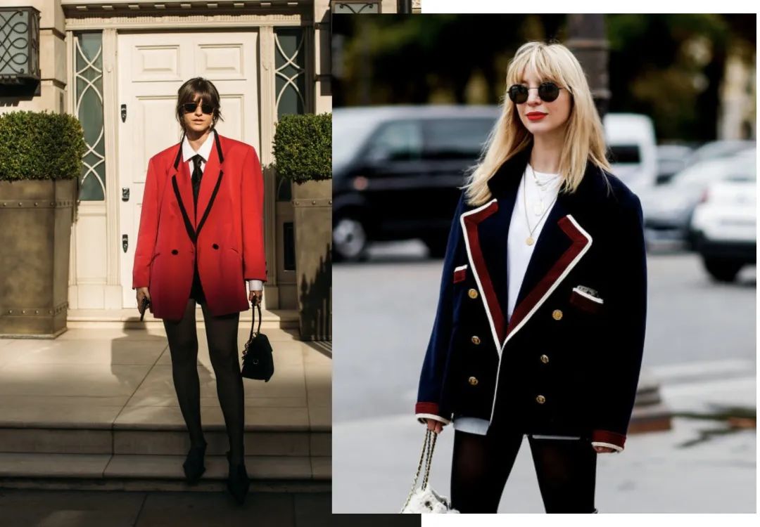 其次就是版型与细节的不同,Oversize的西服可以给造型加分,领口的设计更是时髦的点睛之笔。