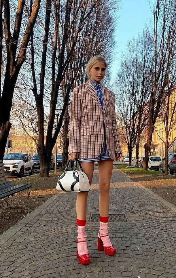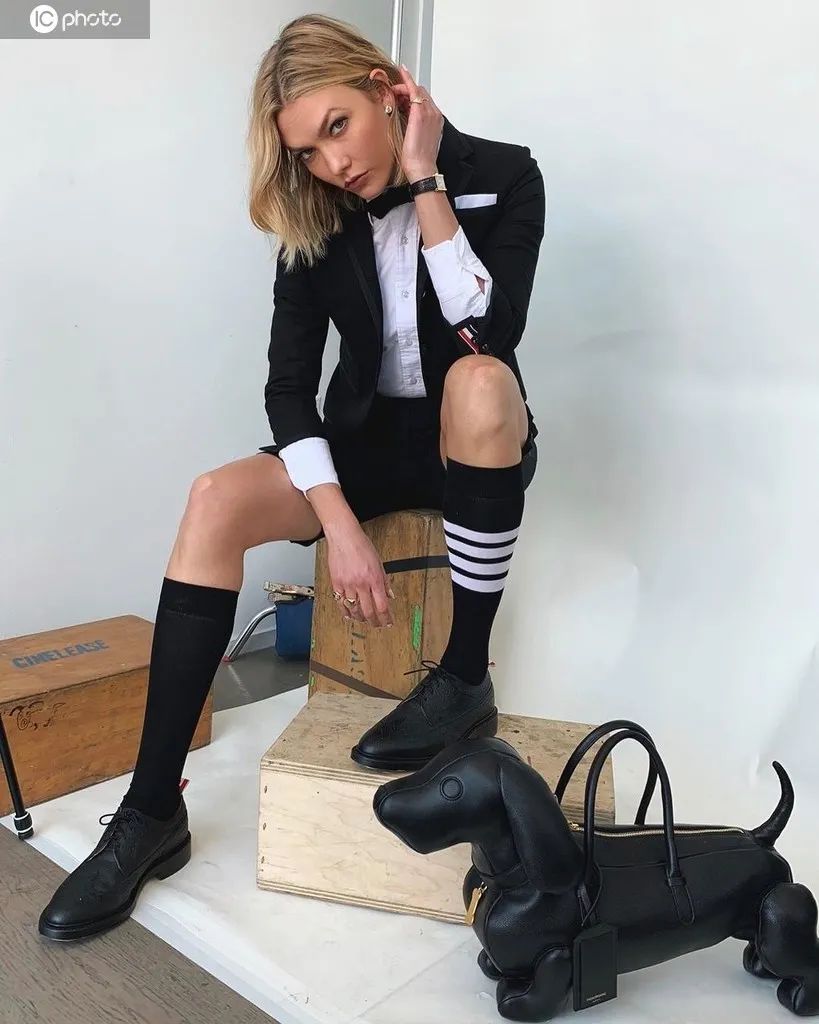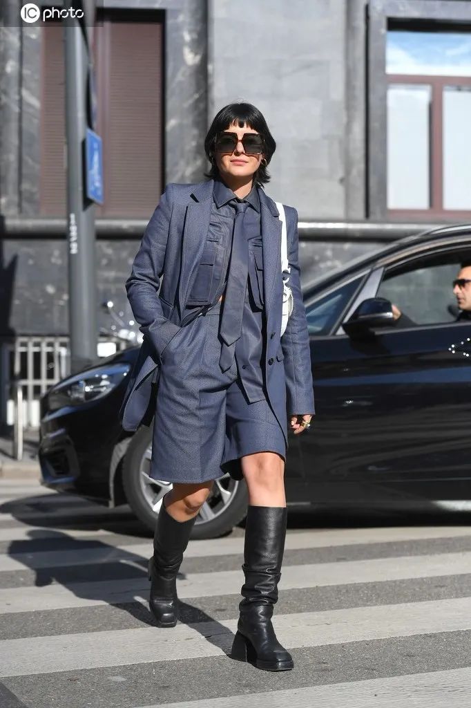总之就要有一些时髦的元素在其中,就像小kk的高筒袜,一下子中和的“死板”。
