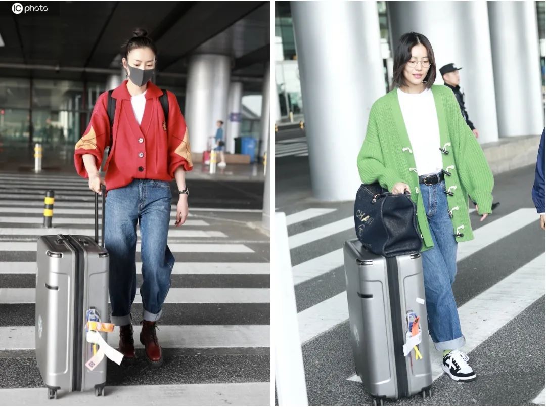 学院风还有一个很好穿的款式,那就是温柔的针织,针织衫总是带来阳光感,还有一丝丝学生感。你看大表姐刘雯两套针织衫校服造型,红色款靓丽又儒雅,绿色款沉稳又低调,真的就犹如校园中的学姐模样。