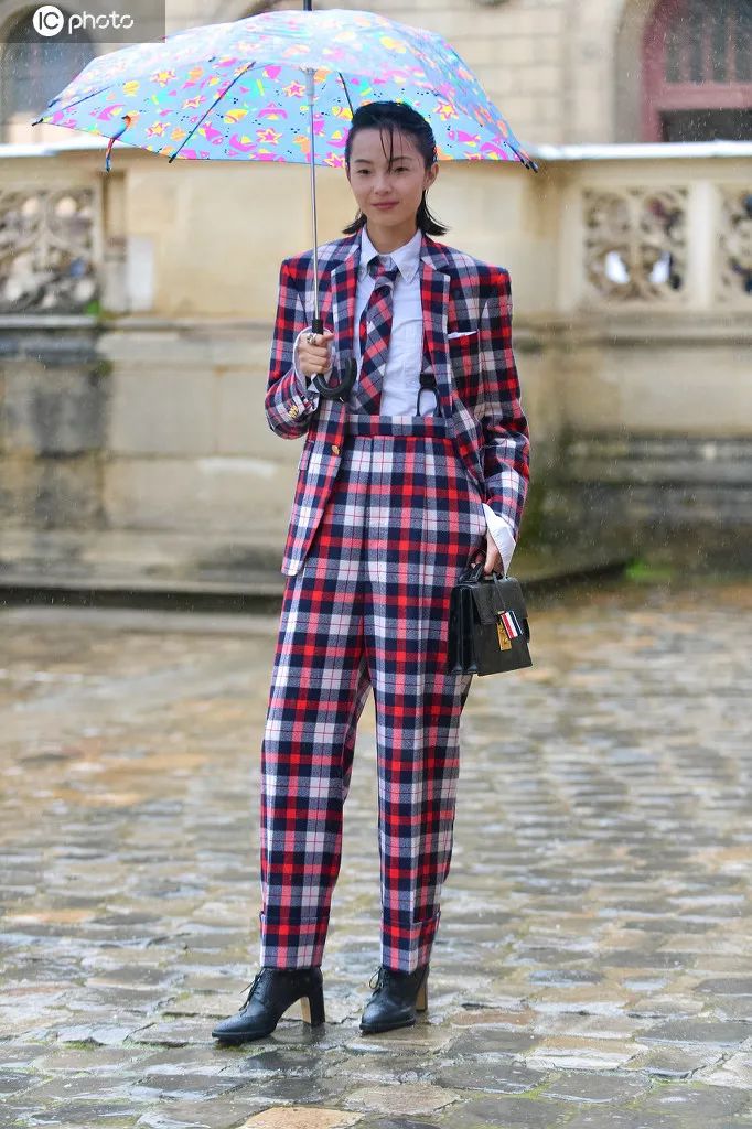 雎晓雯的西服叠穿依然瞩目,内搭的条纹领带,配上配上蓬松的卷发,谁看谁想去搭讪,这是哪个大学的plmm。