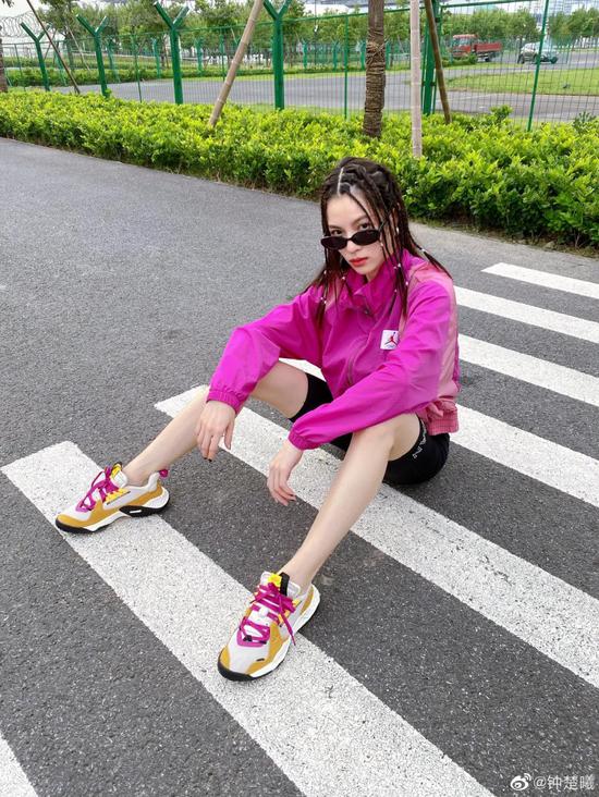骨骼明显的五官,让她也能hold住脏辫造型。配上一身亮色的运动装,够有范!