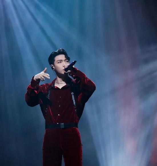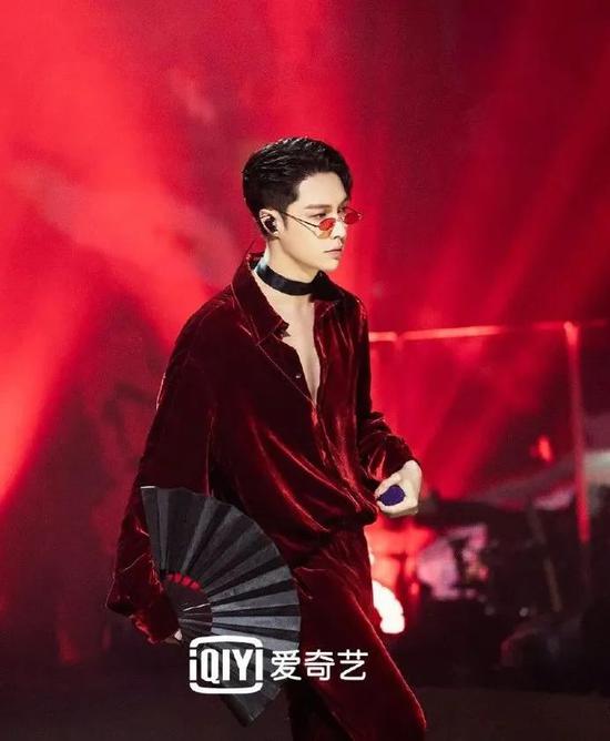 舞台上的他身穿一身红色丝绒套装,矜贵的质感与红色墨镜完美呼应。