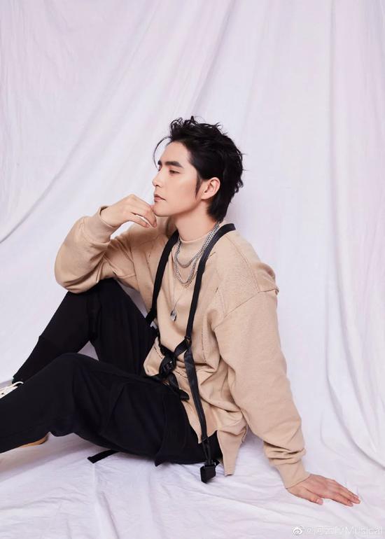 音乐剧王子阿云嘎选择将各种银色项链叠戴,粗细长短不一的项链,为他原本十分高雅的气质,增添了酷炫街头的感觉。