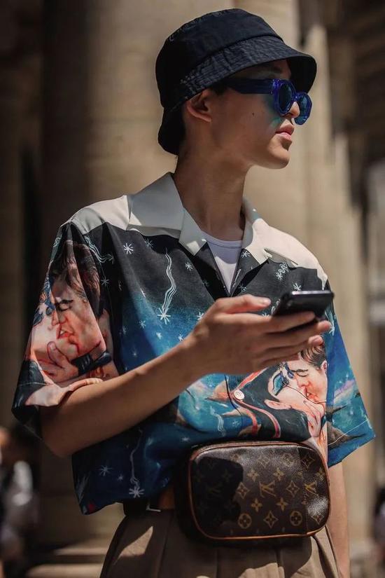 能将黑色墨镜戴出独特的街头气质,非许魏洲莫属了。黑色墨镜搭配印花短袖衬衫,可以堪称夏季最佳搭配典范。