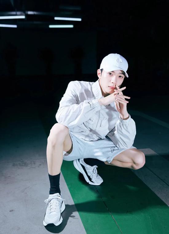戴着棒球帽的赖冠霖,搭配银白色套装,黑色高帮袜的出现将造型点亮,保持潮范十足的同时,又给人干净阳光的感觉。