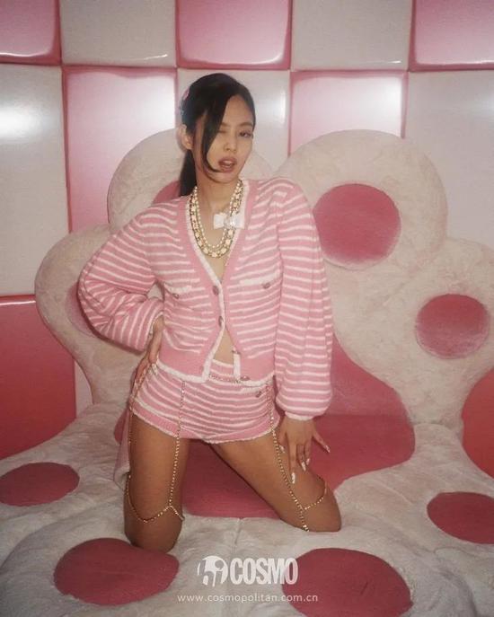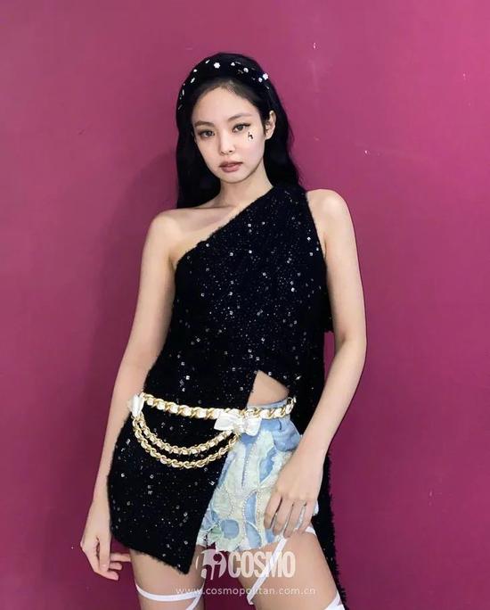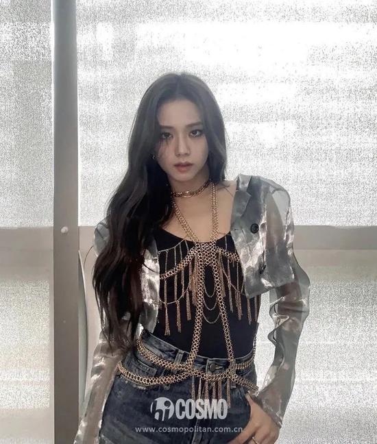 虽然第一眼看上去平平无奇,但细看Jennie的腰链不仅是整套造型的亮点所在,更在无形之中增加了层次感,既性感又优雅。