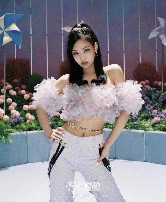 当COCO正在纳闷怎么这次Jennie的天鹅颈与直角肩上空空如也时,视线往下一扫,原来小心机在腰间。