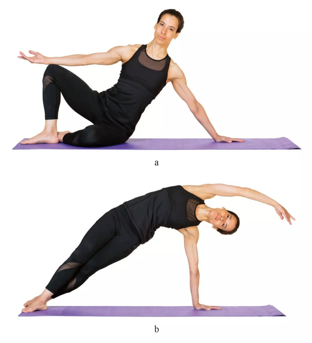 体位:由侧弯的顶部伸出,支撑手臂与地面垂直,腰部和臀部抬起,整个身体呈弓形。臀部和胸腔在最高点对齐。