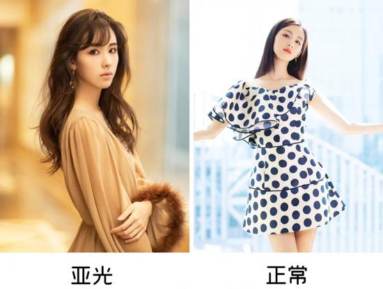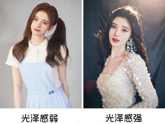 最直观的感受就是,缺少光泽感的话是平平无奇小美女,一旦有光泽感加持,就是人间绝色富贵花。