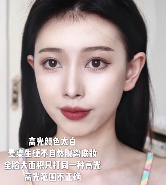 很多人打好了高光真的就“整容”了,鼻子不够高,高光凑;脸颊不够饱满,高光填。