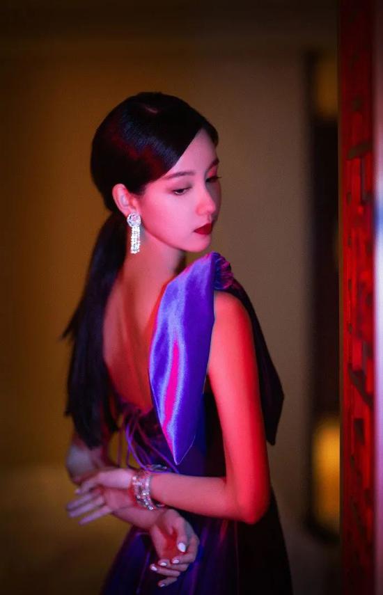 陈都灵这身紫色丝绒裙也很出彩,真实被惊艳到。