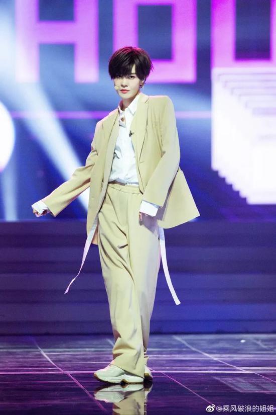 在比赛中也频频因为造型出圈,比如《屋顶着火》的 Solo 表演,光脚的舞台简直绝美。