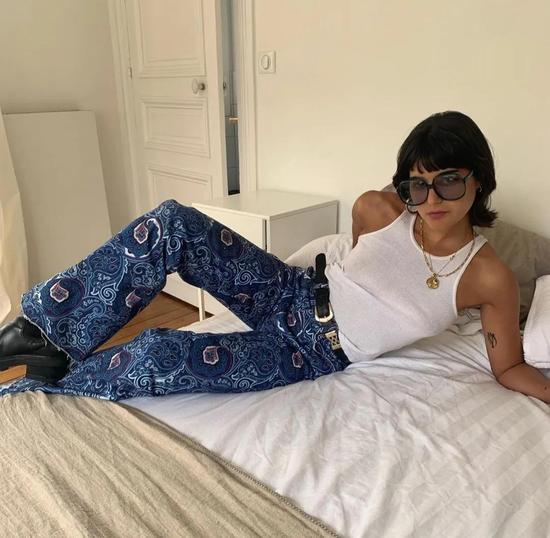 因为是基础款,搭纯色不过瘾?来条花裤子吧,还蛮港风的。