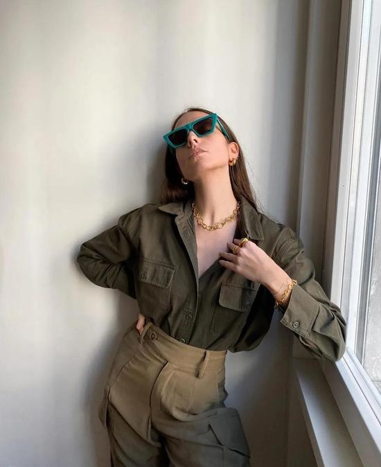 拽酷风配色一般偏深色,但任何东西加多了都会失去亮点和特色。偶尔来几件亮色单品点缀一下不仅不会破坏原有的高冷疏离的氛围,还让给整套look加深了记忆点。