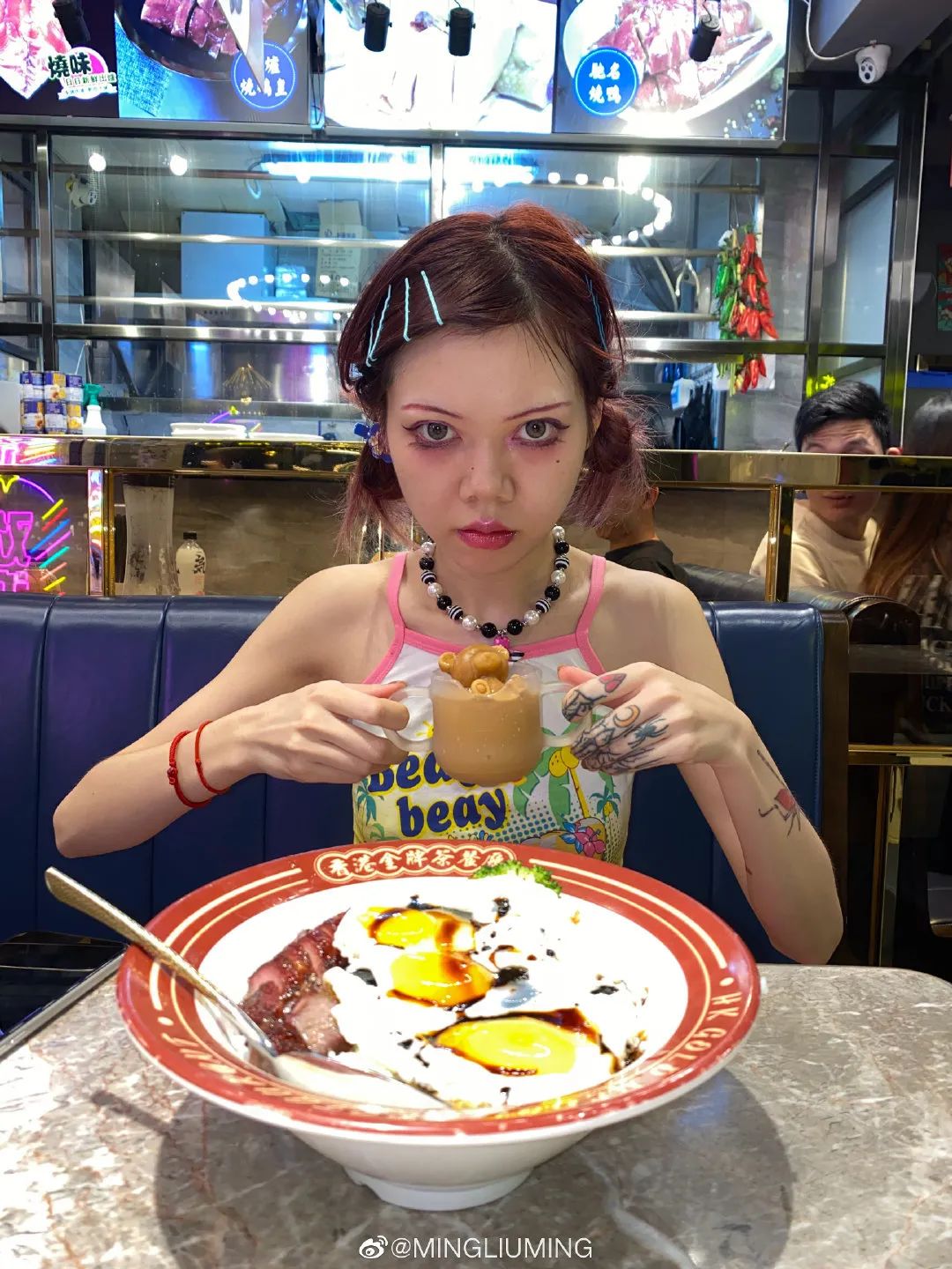 如果你喜欢亚文化穿搭,那MINGLIUMING的穿搭一定要pick。这个画着超大眼妆,面色有些苍白的少女博主,是O姐最早关注的亚文化博主之一。
