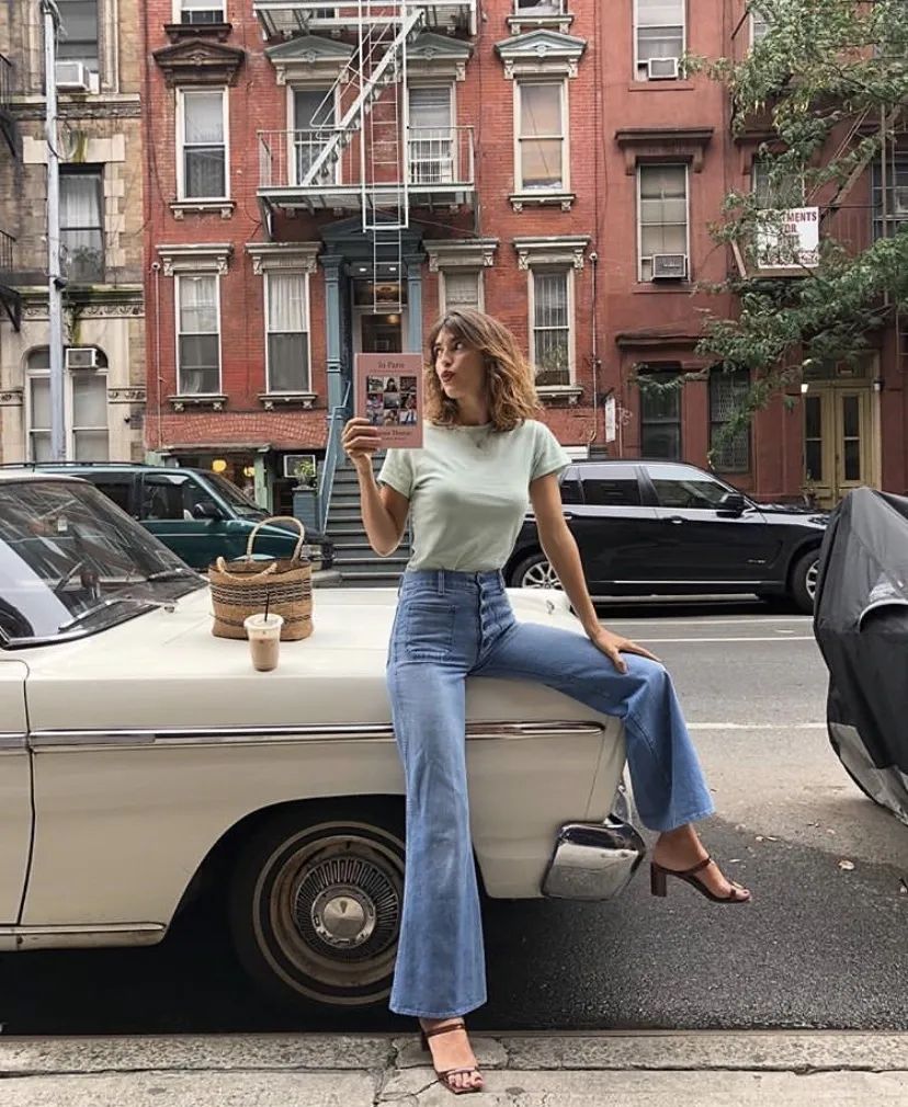 Jeanne Damas的搭配其实都比较简单,纯度较高的单品与自然的滤镜相结合,营造着一种假日气息。