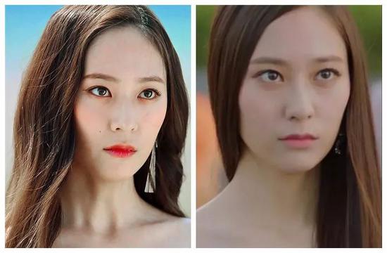 之前在《河伯的新娘》里,秀晶被很多网友吐槽感觉没有之前好看,看起来有点老气横秋。其实就是因为剧中的妆容显得颧骨特别突出,加上发型也没有很好地修饰遮掩脸部线条,就会有老气的感觉。整个人看起来完全不像20刚出头的女生。