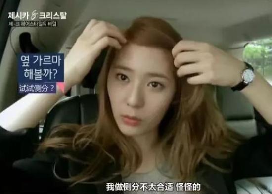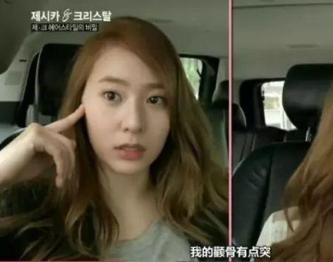 秀晶自己也深知这一点,所以在录综艺节目的时候也大方表示基本会保持中分的发型,主要目的就是遮盖颧骨。